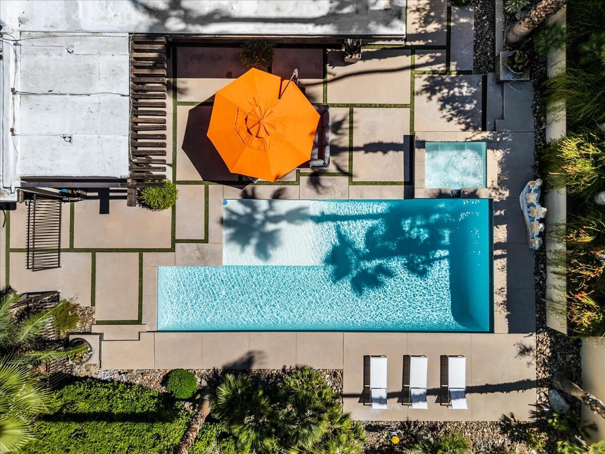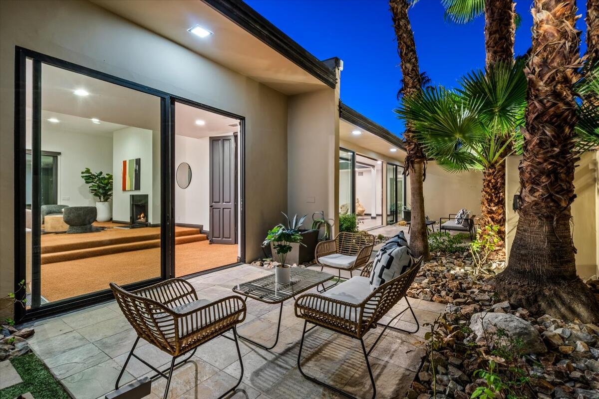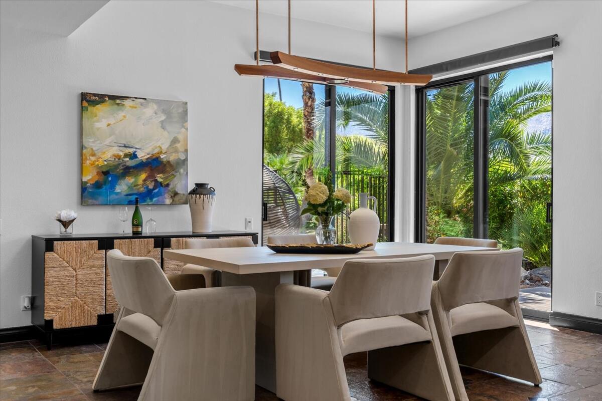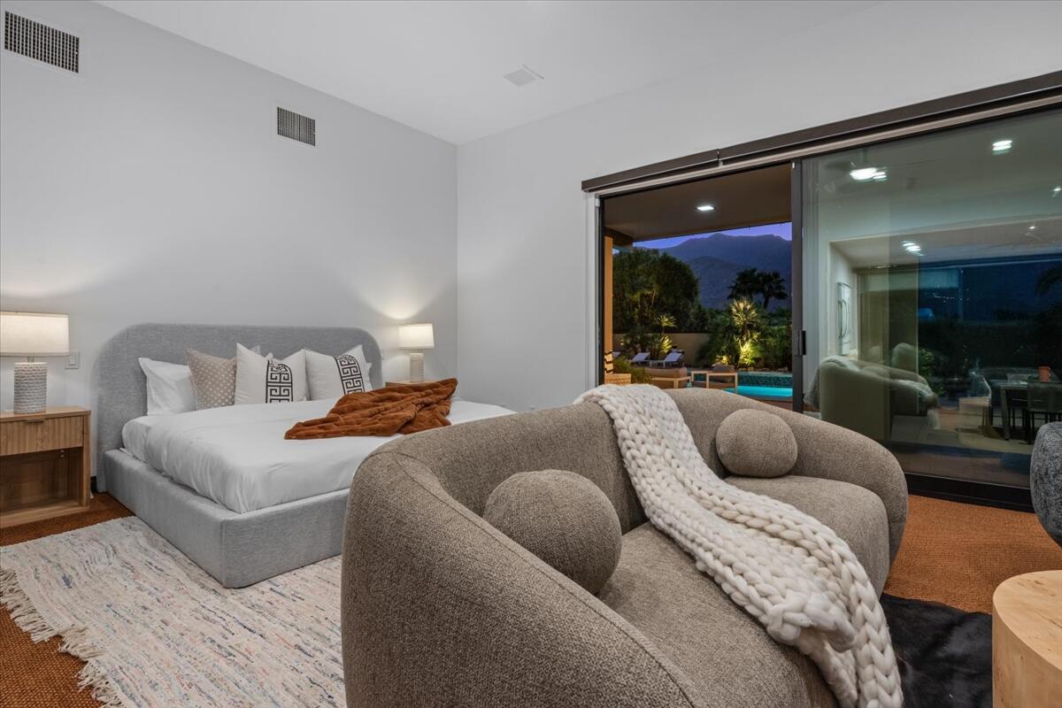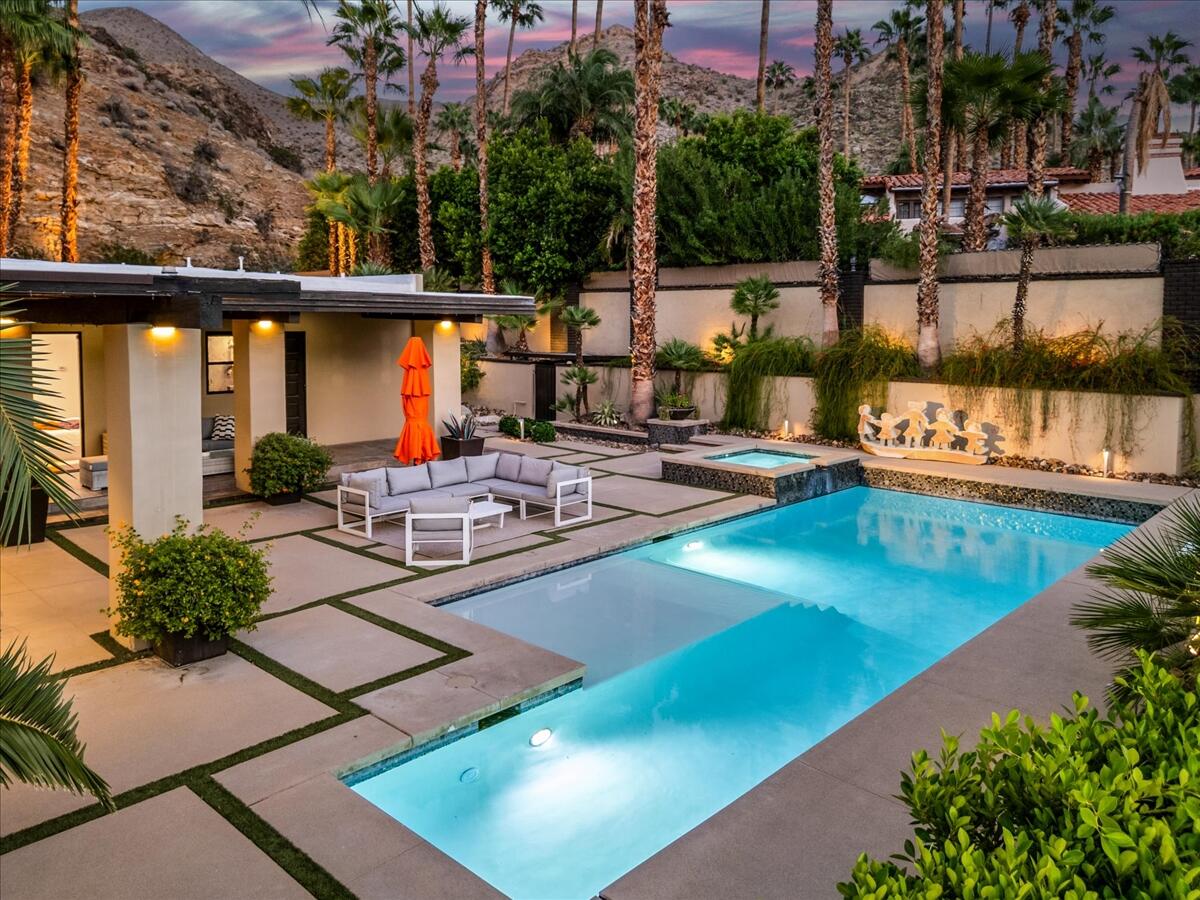 Experience the South Palm Springs lifestyle in this private contemporary estate set on over an acre in coveted Andreas Hills. Recently updated with a newly replastered pool/spa and fully paid-off solar, the home blends modern comfort with serene desert living. Walls of glass frame dramatic mountain views, while soaring ceilings and open living spaces create an effortless indoor-outdoor flow. The resort-style yard features multiple lounge areas, a misting system for warm desert days, and total privacy with no homes behind you. Located on a quiet cul-de-sac, this is a rare opportunity to own a spacious, upgraded retreat surrounded by nature and just minutes from the best of Palm Springs.