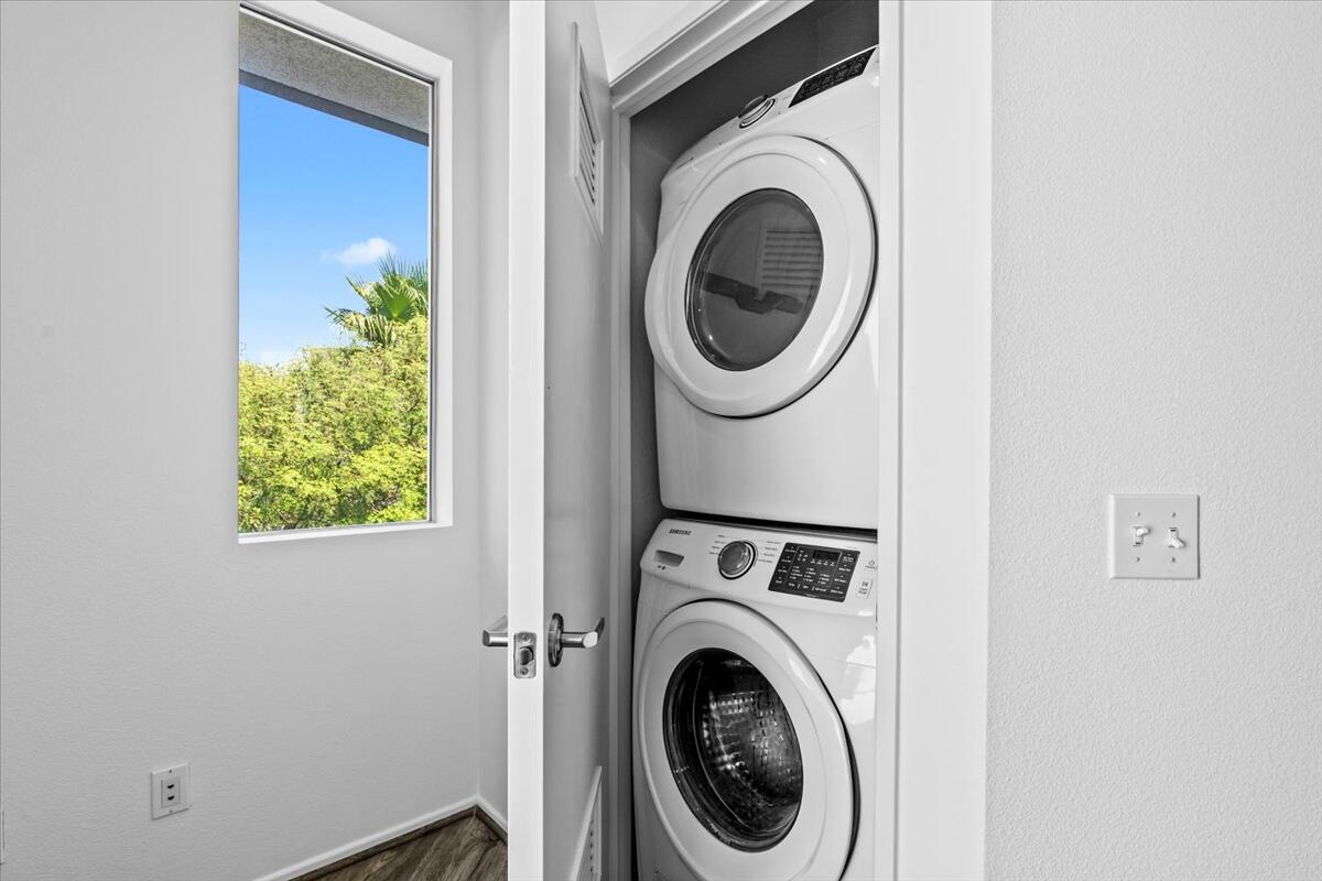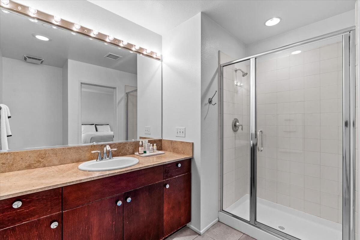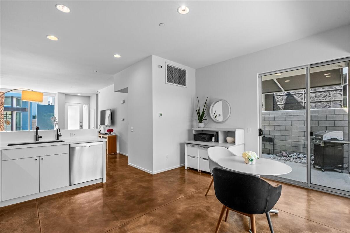 Motivated Seller - Loft-like living in the gated 'Palermo' community, in north Palm Springs. Clean and very well maintained, 2-story, 2-bed, 2.5 bath townhome (Palermo's Plan B layout) on fee-simple land (you own it).Upgrades include a $30k kitchen remodel (in 2021) with custom cabinetry (soft close), ample storage, beautiful tile and backsplash details, new appliances and plenty of natural light and ventilation from 2 sets of glass sliders. The sliders open to a mature, fully landscaped back yard with automated irrigation system. A custom California Closets desk build-in can be used as a small home office or for additional storage.Other upgrades include: a newer A/C unit (installed 2021) with smart thermostat that can be managed by remotely; custom blackout shades throughout; a newer (2019) garage door; newer (2019) pet friendly flooring throughout the second floor; newer (2019) Samsung washer-dryer; new (2024) backyard awning.The home's furnishings are available for purchase, making this a true turn-key opportunity.On the first floor, the large living room boasts 12' ceilings, continuing the home's open, airy vibe. Scored, polished concrete floors throughout.Fully carpeted stairs lead to 2 upstairs bedroom suites, each with a dedicated bathroom. Each bedroom has a custom reed glass door that lets light move through the entire upstairs level, while offering privacy. Upgrades to the front bedroom (south facing) include a California Closet and wall unit for additional open storage (great for a sneaker collection!). The front bedroom opens to a private terrace with potted cacti and mountain views.Palermo is a private gated community featuring 2 pools, 2 spas, a fitness room, and a clubhouse with TV lounges, billiards, and a full kitchen for residents to entertain. With only one Plan B unit on the market, this home won't last long.